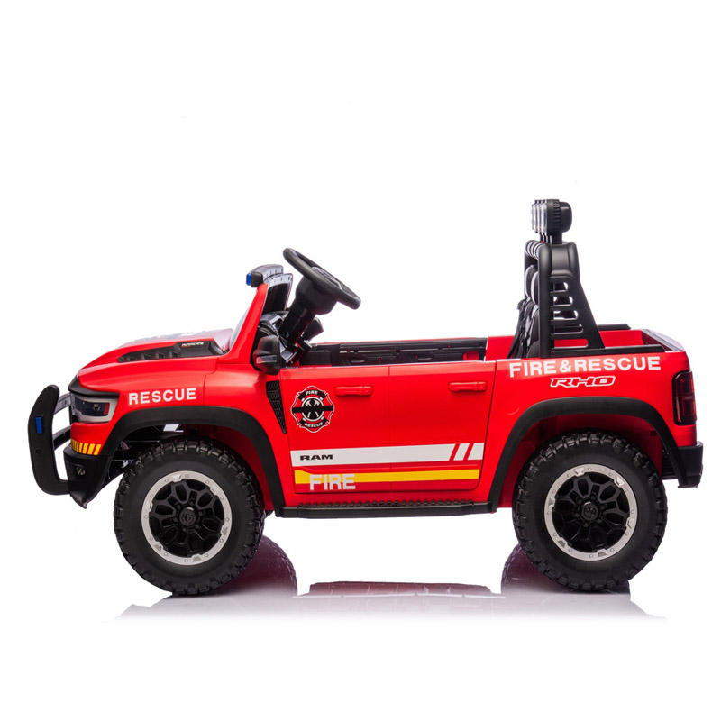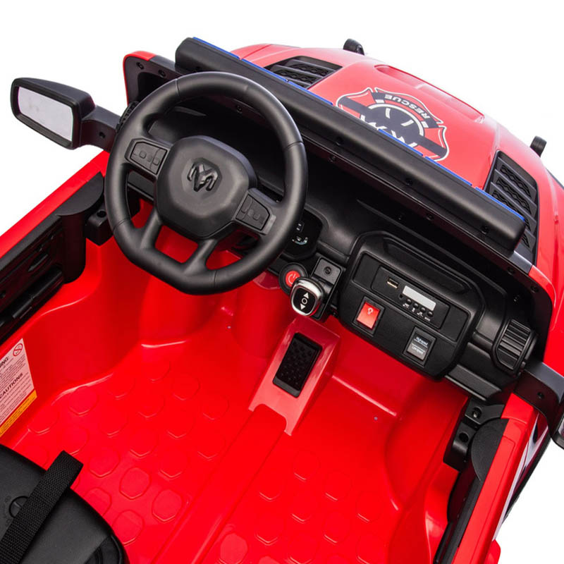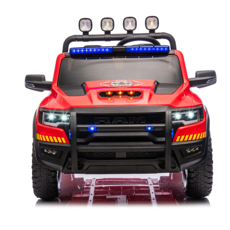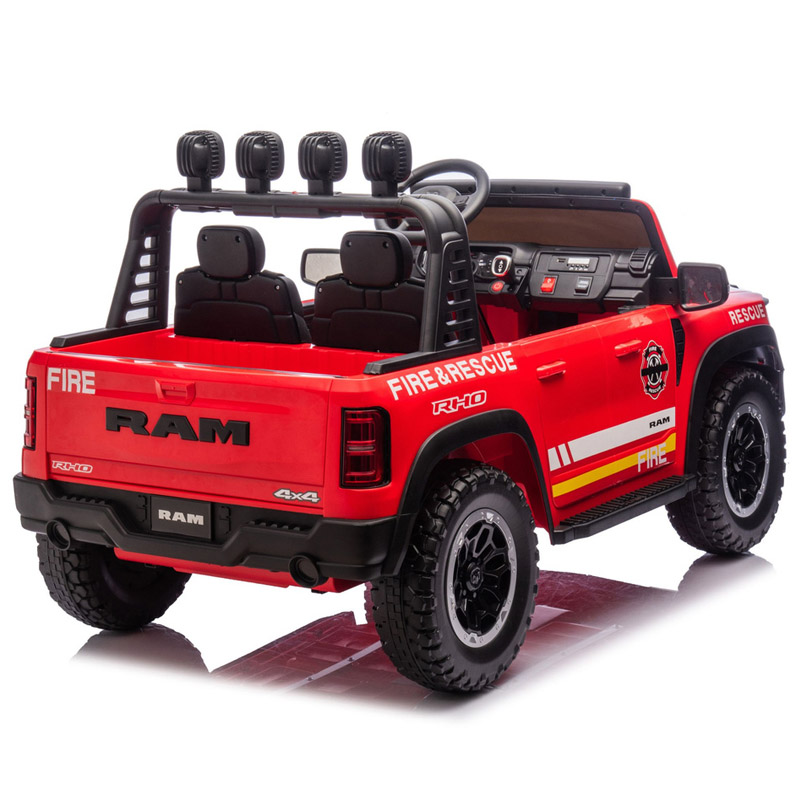 Dodge RAM v gasilski izvedbi bo zagotovo zadovoljil vsakega otroka. Ta različica Dodga se ponaša s fantastično opremo in kar 4 motorji vsak po 100w moči. Mehak kavč je izdelan iz črnega ekološkega usnja. Če se malček dolgočasi, lahko vedno uporablja glasbeni panel, ki bo popestril vsako vožnjo.